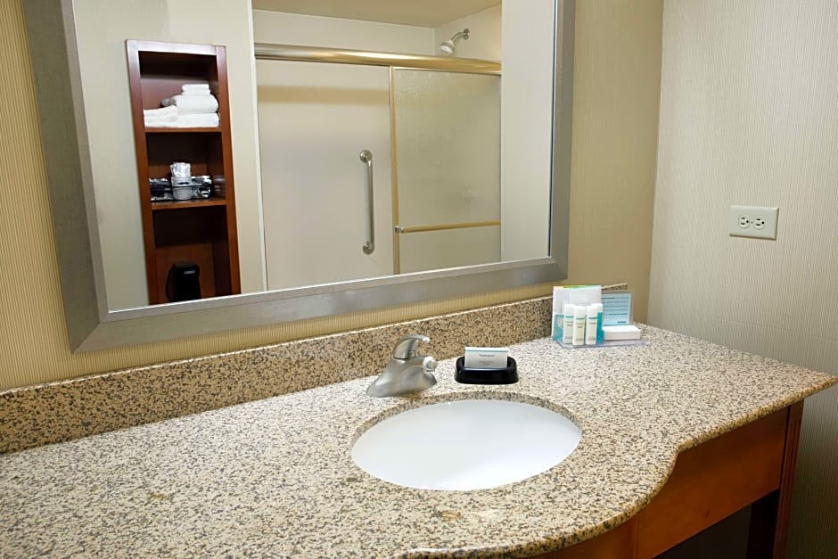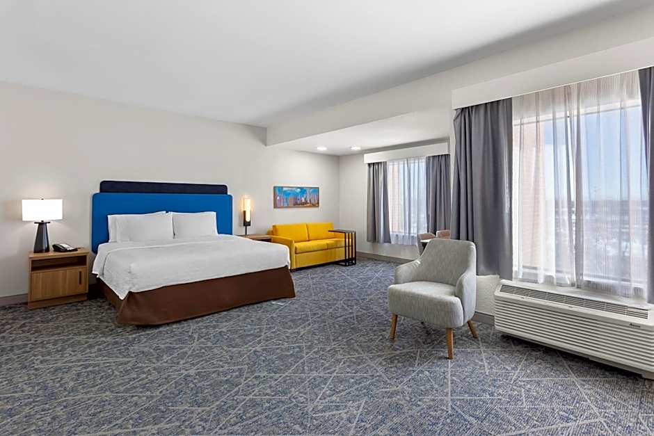 Sofa bed, free WiFi, 32-inch LCD TV, work area, tea/coffeemaker. Have a relaxing stay in this guest room that features a king-sized clean and fresh Hampton bed®. Unwind on a plush sofa bed while watching your favorite show on the 32-inch LCD TV. Enjoy a hot drink from your in-room tea/coffeemaker. This room includes a spacious work desk and free WiFi to let you catch up on work while traveling. In the bathroom you'll enjoy fluffy towels, a WaterPik® showerhead and curved shower rod for added space and light.